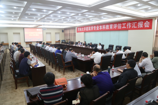 建筑学专业本科教育评估工作汇报会在金明校区图书馆三楼会议室召开。评估专家组成员,校领导娄源功、赵国祥、刘志军、许绍康,校总会计师韩守富,学校相关职能部门负责人,蘑菇视频