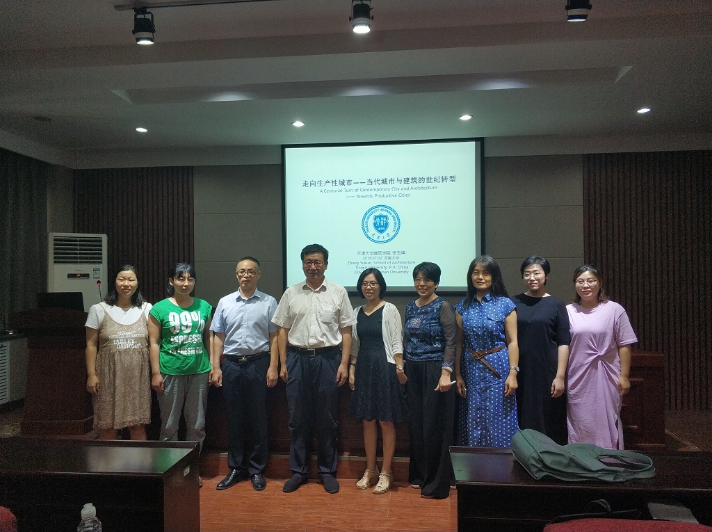 对张玉坤教授的到来表示欢迎,并对张教授的学术研究进行了介绍。随后张教授以柯布西耶《新精神》的百年回想为线索,引出新时代全球面临的危机与挑战,中国城镇化发展的迷失与困惑,指出当代城市与建筑面临再次转型的时代背景,张教授通过消费到生产;全球到本土;集中到分布;单一到整体以及走向生产性城市五个转型方向,为我们点明了城市生产性转型的方向。之后张教授通过具体的生产性城市建构策略详细讲解了生产性城市的研究成果,最后以其工作室的设计探索实例作为报告结尾,娓娓道来,同学们认真学习,收获良多。