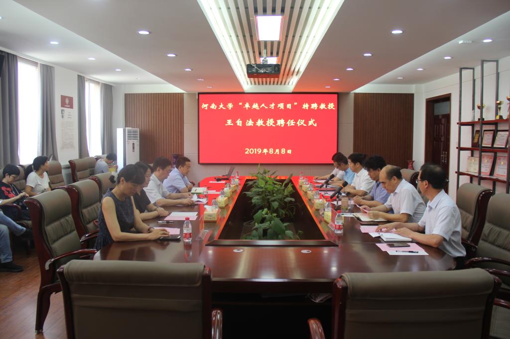 院史馆举行。科技部973首席科学家王自法教授受聘为我校“卓越人才”特聘教授。校党委常委、副校长许绍康、国际合作交流处处长毛立群、党委教师工作部、人事处副处长吴建伟、科学技术研究院院长路杨、王自法教授、蘑菇视频