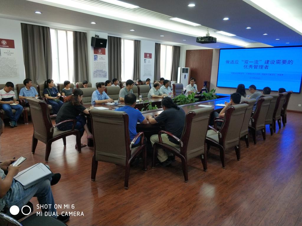 党委组织部副部长、干部培训中心主任韦胜军作了题为《做适应“双一流”建设需要的优秀管理者》的报告,他结合自身工作经历,根据目前学校双一流建设现状,从中央的要求,事业的需要,工作的方法三个方面向大家阐明了如何做一名优秀的管理者,特别是他指出的18条工作方法让与会人员受益匪浅。他指出一流大学要有一流的干部,打铁必须自身硬,要自觉激发内在动力,努力做到“清”、“慎”、“勤”,要时刻有危机意识、使命意识,昂扬向上的精神状态和担当精神。