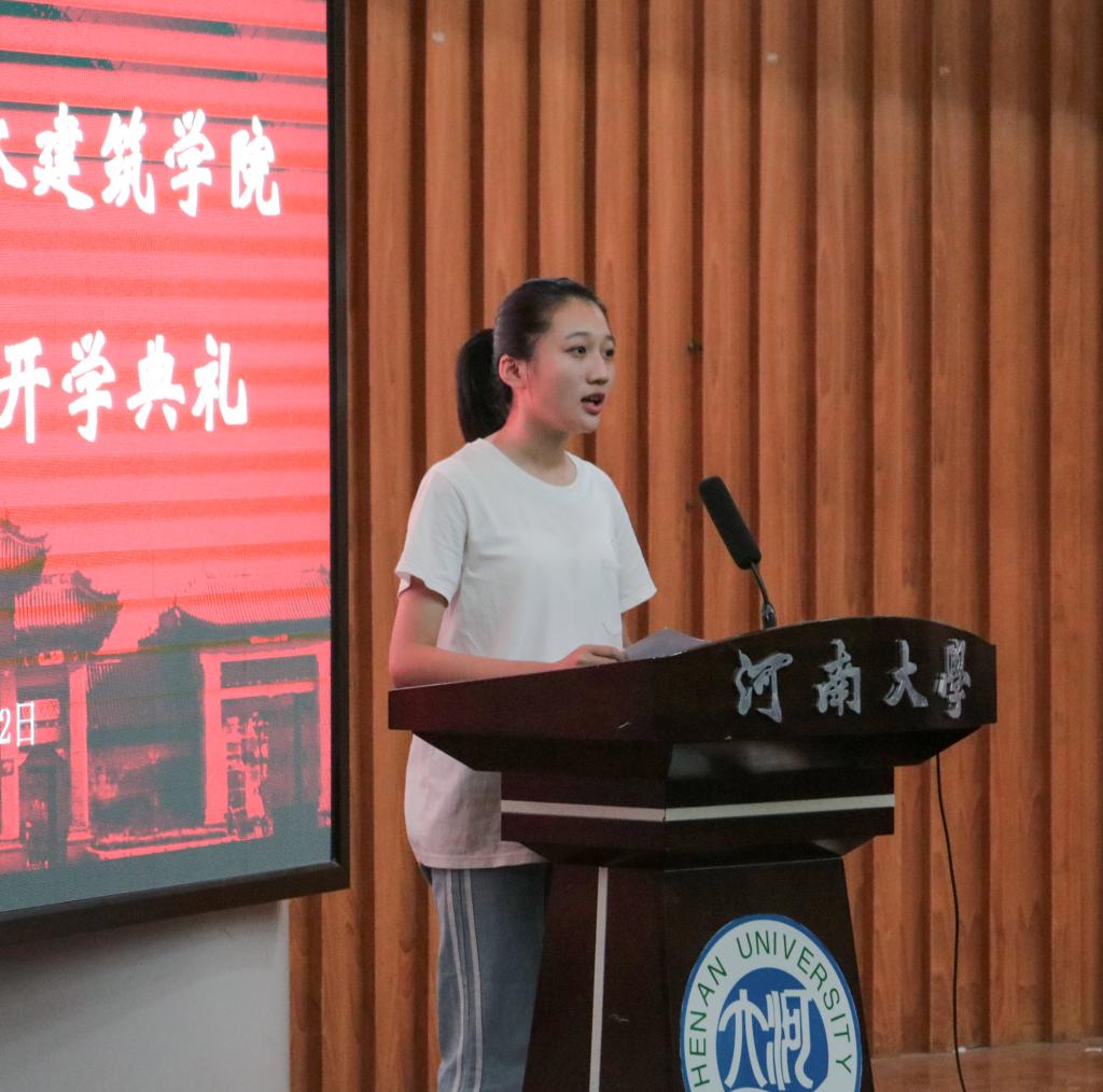 学生代表、2017级学生赵昊琳代表在校生表达了对师弟师妹的期待与祝愿,她希望学弟学妹们在学习基础课、专业课的同时广泛涉猎,悉心钻研,她还强调培养健康积极的人际关系重要性、尊敬老师、学会感恩、使用礼貌用语的习惯。