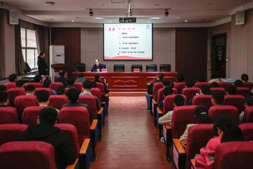 院党委书记李社教讲授了题为《坚定“四个自信”,成就伟大梦想》的专题党课。他从教育心理学角度导入什么是自信,结合我国历史国情深入阐述了“四个自信”的形成过程和发展历史、“四个自信”的概念和逻辑关系、为什么要坚定“四个自信”,最后提出学好用好“四个自信”,促进全面发展。他就单位的全面发展提出:一要有明确的奋斗目标,二要有健全的组织系统和领导核心。三要形成正确的舆论和良好的氛围。四要有共同的行动。他向同学们提出三点要求:第一,申请加入中国共产党,积极向党组织靠拢。第二,努力考研考博,不断提升自己的专业素养。第三,找到一个适合自己的锻炼方式,做到身体康健。他向全体教师共勉:第一少抱怨,多提建议。第二发扬混凝土精神;第三任劳任怨,脚踏实地干事。最后希望全体师生牢固树立四个意识,坚定“四个自信”,坚决做到“两个维护”,扎实做好“不忘初心、牢记使命”主题教育,全面推动学院事业发展。