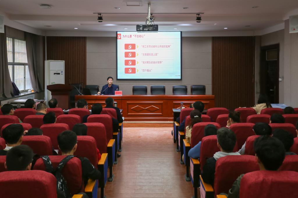 发展历史和目前专业认证和学科点建设,围绕“共产党的初心是什么”“为什么要不忘初心”“如何才能不忘初心”三个方面进行阐述和解读,就目前学院发展面临的问题,他讲到:一要坚定信念。二要直面使命敢担当。三要品行端正做表率,厚德载物。学院的发展需要每一位师生牢记使命,砥砺奋进。