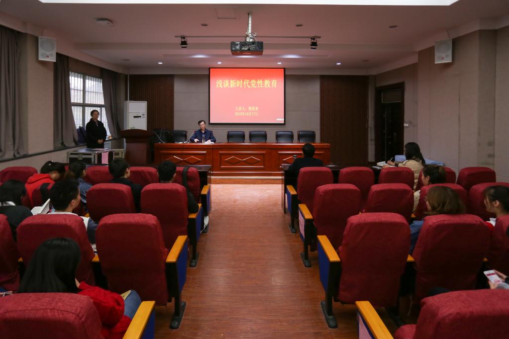 副院长郭保来作了题为《浅谈新时代党性教育》的党课。他先从政党,中国共产党的诞生讲起。接着又饱含深情的向大家讲述了中国共产党执政70年从站起来、富起来到强起来的辉煌成就。最后提出要加强自我学习,自我教育,树立正确的世界观,人生观和价值观,不断增强宗旨意识,提高道德修养,从而增强党性修养。