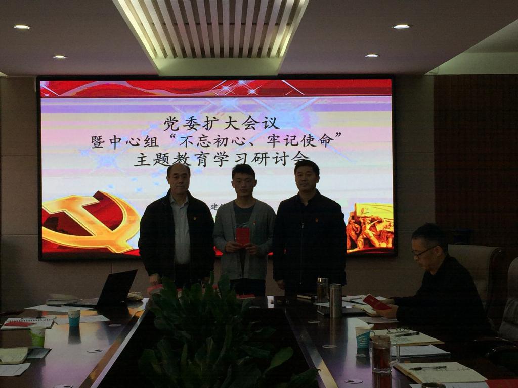 李书记和院长岳建伟一一为班子成员和支部书记配戴党徽和发放《中国共产党章程》读本。