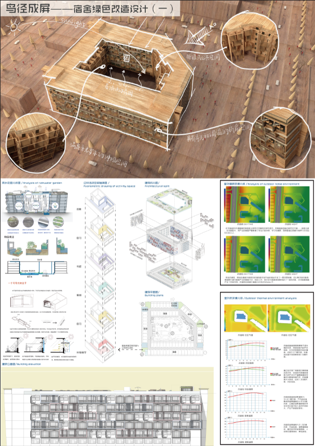 选送的参赛作品《鸟径成屏—大学宿舍改造》最终荣获一等奖。