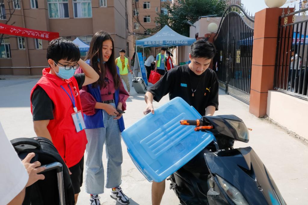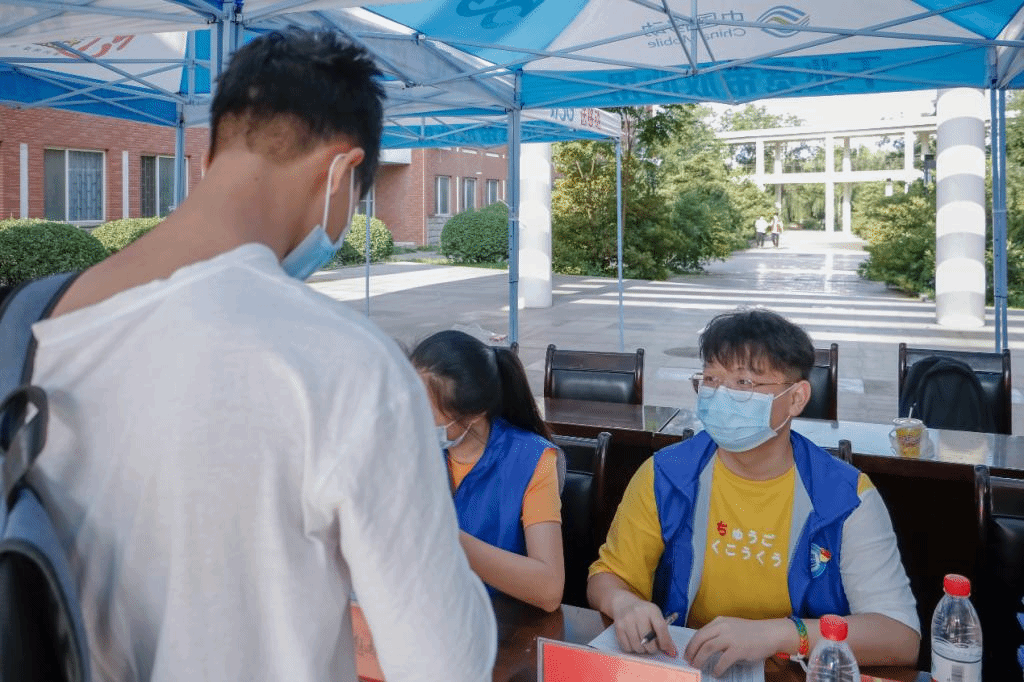 楼下迎新摊位的报到处,都有学生党员的身影,他们和迎新工作人员和志愿者一起,以饱满的热情迎接每一位同学的到来。他们主动为新生们讲解报道流程,引导新生办理入学手续,帮助新生提着沉重的行李箱,带领新生前往宿舍。每位学生党员都始终秉持着“明德新民,止于至善”的校训精神,耐心地为新生们答疑解惑,贴心周全地为他们服务,为新生入学开启了温暖的大门。