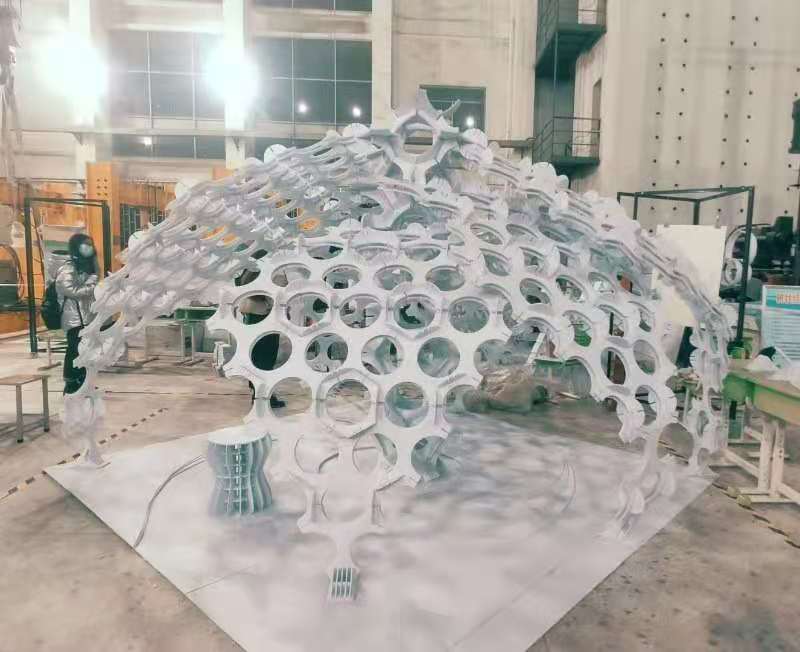 比赛过程中,各支队伍结合设计作品充分展现了各自风采。BIM汇报答辩环节,选手们解析缜密,观点新颖,虚拟展现精彩纷呈;实体模型现场搭建环节,参赛队员齐心协力,环环相扣,向大家呈现了形态优美、意境开阔的模型作品。