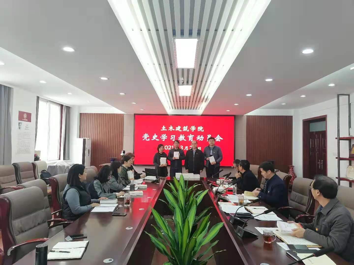 党委书记李社教为参会人员发放了《论中国共产党历史》、《习近平新时代中国特色社会主义思想学习问答》、《中国共产党简史》等学习资料。传达了学校党史学习教育动员大会精神,并在学习动员讲话中指出,抓好党史学习教育意义重大,要认真学习习近平总书记在党史学习教育动员大会上的重要讲话精神,把思想和行动统一到党中央和省委重要决策部署上,党的十八大以来,群众路线、两学一做、“不忘初心、牢记使命”主题教育、党史学习教育是一脉相承的,都充分体现出中国共产党全心全意为人民服务的宗旨。他提出三点要求,一、提高政治站位,把党史学习教育作为当前和今后时期的首要政治任务。二、开展有学院特色的系列活动,将党史学习教育与专业业务相融合。三、强化主体责任,各班子成员、支部书记、系主任、辅导员要不折不扣的做好做实,全体师生发挥滴水穿石的精神,通过党史学习教育,激发干事创业的热情,为学院、学校的高质量发展提高动力保障。