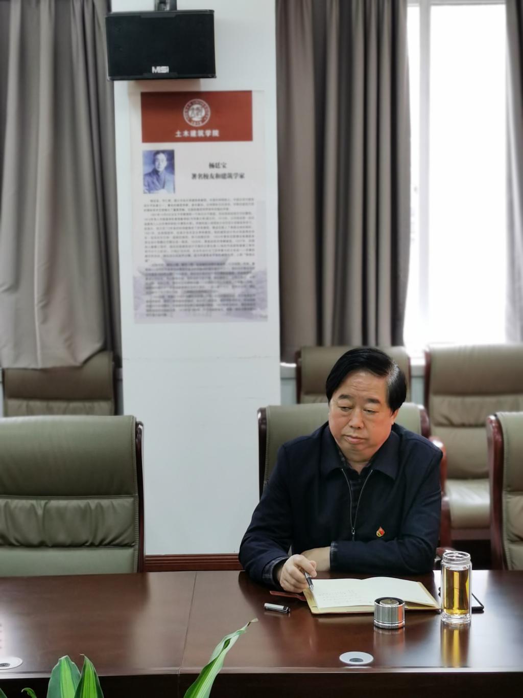 院长岳建伟汇报了目前学院中心工作和面临的机遇挑战。他介绍了目前学院建筑学专业和土木工程专业的专业认证进展工作和学科建设情况,对比省内外高校之间的差距,表示学院将不遗余力做好专业认证和土木工程博士点申报工作。