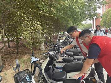 党员们还对校园秩序进行维护,在教苑食堂、南苑食堂、综合楼、学院附近顶着烈日维护车辆有序摆放,向群众充分展示了党员们的风采。