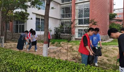 金明校区琴键楼、综合楼周边的公共区域进行全面的清洁。活动中,党员们干劲十足、不怕脏、不嫌累,分工协作,拾枯枝落叶、除杂草、捡白色垃圾、清除小广告等。
