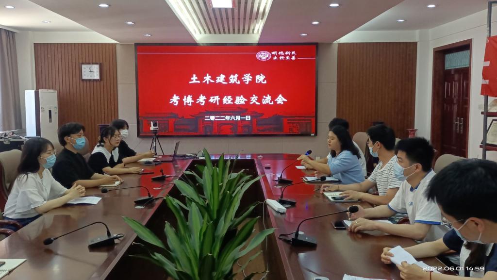 于6月1日下午在16B204举办考研考博经验交流会。团委书记徐贵香,研究生辅导员王凯,部分研究生及本科生参加此次会议。会议由徐贵香主持。