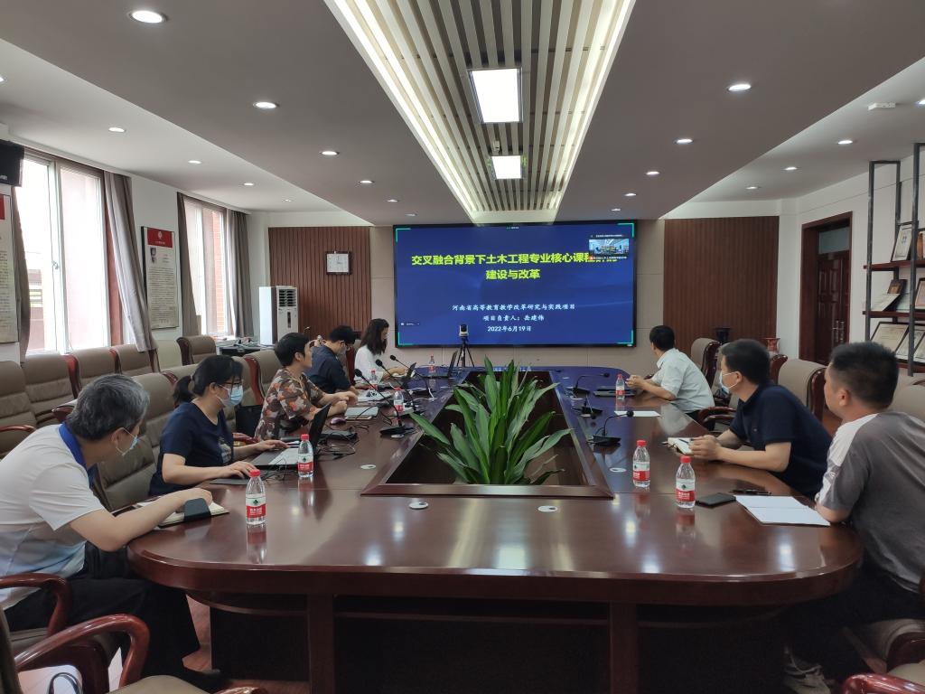 在院史馆204进行了河南省高等教育教学改革研究与实践项目的开题工作,开题项目名为“交叉融合背景下土木工程专业核心课程群的建设与改革”,项目负责人为院长岳建伟教授。线上参与开题评审专家分别是西安建筑科技大学土木工程学院院长史庆轩、郑州大学水利与土木工程学院副院长杨健中、河南工业大学蘑菇视频