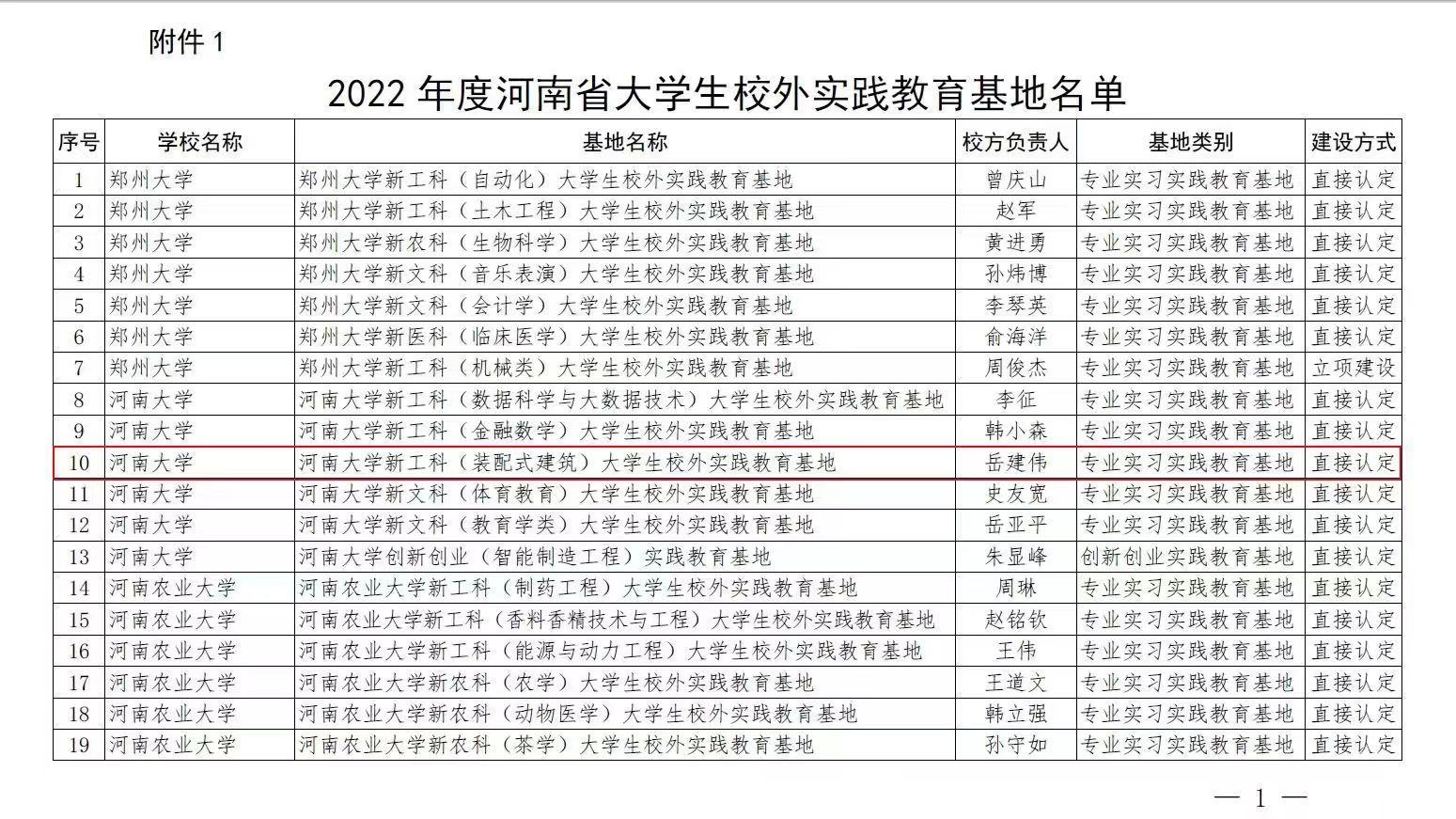 申报的河南省新工科(装配式建筑)大学生校外实践教育基地被直接认定为省级大学生校外实践教育基地。