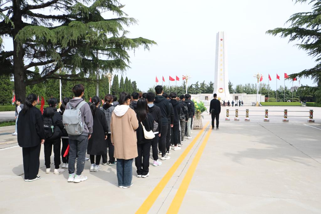 草长莺飞四月天,清明怀思祭英魂。在讲解员的带领下,参加人员有序参观烈士陵园陈列馆。通过相关单元的学习,学生们从一行行简短而厚重的事迹、一串串平凡而崇高的名字、一张张模糊而泛黄的照片中感受革命烈士的英勇战斗历程。通过现代科技,开封战役活灵活现地呈现在学生们的眼前,革命先烈的英勇事迹深刻印刻在学生们心中。随后,全体参加人员于纪念碑前整举行缅怀仪式。贾仕波发表讲话并主持活动进行。全体人员列队整齐,庄严肃穆,在庄严的国歌声中,学生们对烈士们致以最崇高的敬意。学生代表怀着最诚挚的心为烈士们献上鲜花,学生们深深鞠躬并集体默哀一分钟表达他们对革命先烈的深刻悼念与缅怀。学生代表依次进行发言,他们表示今天的美好生活都是革命先烈为我们创造的,是血红的鲜血换来的,要永远铭记先烈们的伟大贡献,更要继承先烈遗志,发奋学习,立志高远,为全面建设社会主义现代化国家添砖加瓦。最后,全体参加人员合照留念,记录下这庄重的时刻。
