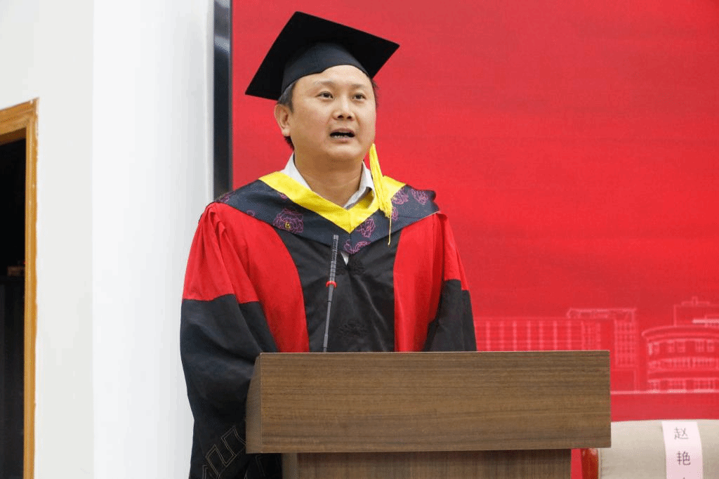 南晗代表学院向2023届全体毕业生表示最热烈的祝贺和最美好的祝愿!向为学生成长成才付出辛勤汗水的各位老师表示崇高的敬意!向守候在家乡的同学们的父母表示亲切的问候!毕业是对大学生涯的总结,毕业是职业人生的开始。他希望同学们勤于学习,养成终身学习的习惯,做到学以致用。在面对人生逆境和挫折时,能够保持乐观的心态,直面应对。作为新时代的青年大学生,要扛起时代赋予大家的历史责任,在全面实现中华民族伟大复兴的新征程中奉献青春韶华。四年师友昨日成追忆,千里之行今朝正起航。请大家谨记明德新民、止于至善的校训,践行“百折不挠、自强不息”的大学精神,乘风破浪会有时,直挂云帆济沧海。