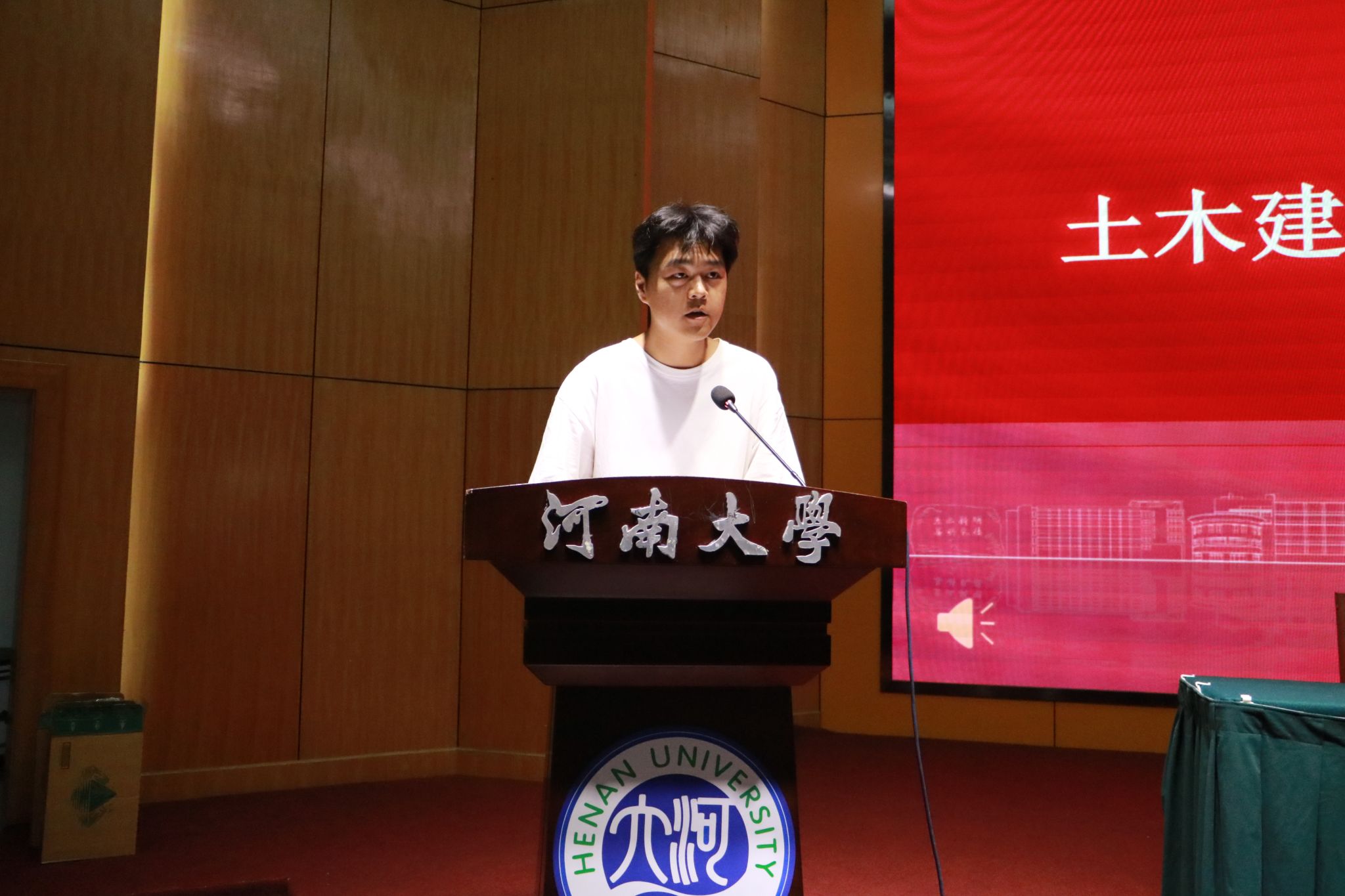 2022级本科生谭刘浩作为高年级学生代表发言,分享了自己的经验和感悟,鼓励学弟学妹们以新一代“铁塔牌”河大青年的自信、担当,展现青春作为、奉献青春力量。