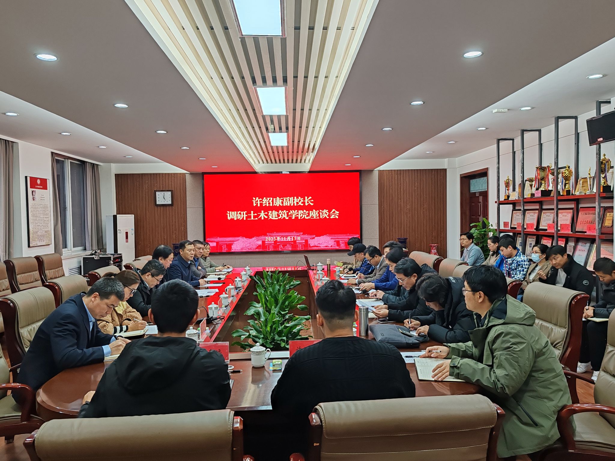 执行院长张建伟首先介绍了学院在专业发展、学科学位点建设、师资队伍、科研项目与成果、社会服务等方面的基本情况,并就学院发展存在的关键问题和下一步发展规划及目标作了详细汇报。与会班子成员结合各分管口工作,分别就学科建设、人才培养、高层次人才引进、专业评估与认证、实验室建设等方面进行补充汇报。随后,河南省特聘教授王哲、校特聘教授杜文风、土木工程专业带头人岳建伟、建筑学专业带头人张义忠、青年博士罗振先、2021级本科生郑丰远等师生代表结合个人实际和学院发展进行了汇报和交流发言。许绍康认真听取与会人员的发言,并就学院发展、专业建设、师资队伍、科学研究、社会服务等方面进行了深入交流。