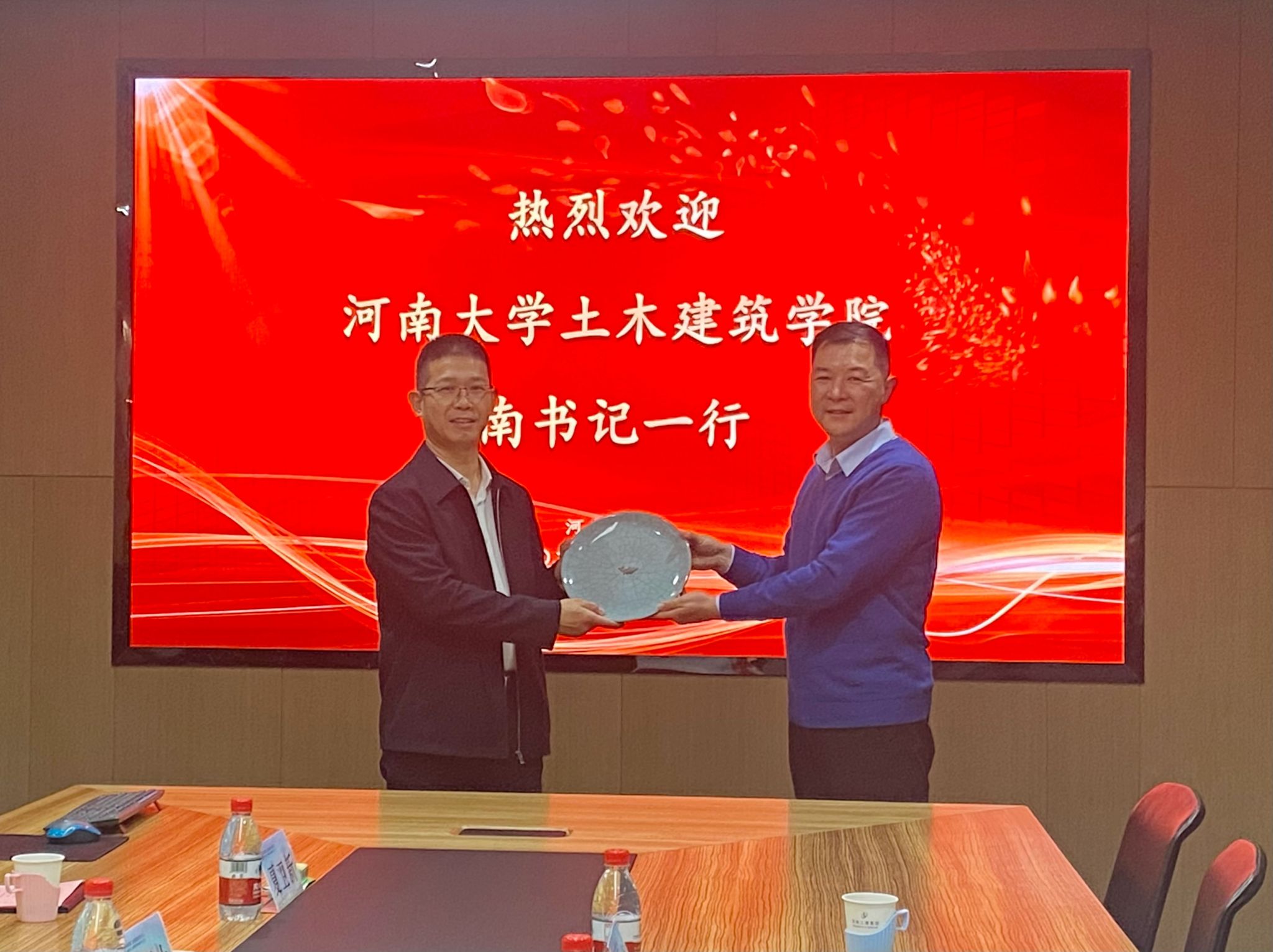 南晗代表学院对河南省第二建设集团有限公司领导层的顺利换届和2023年获两项“鲁班奖”表示祝贺,并就学校对学院转型发展的要求,及学院在人才培养、科学研究、高层次人才引进、科研平台建设等方面取得的成绩进行了介绍。