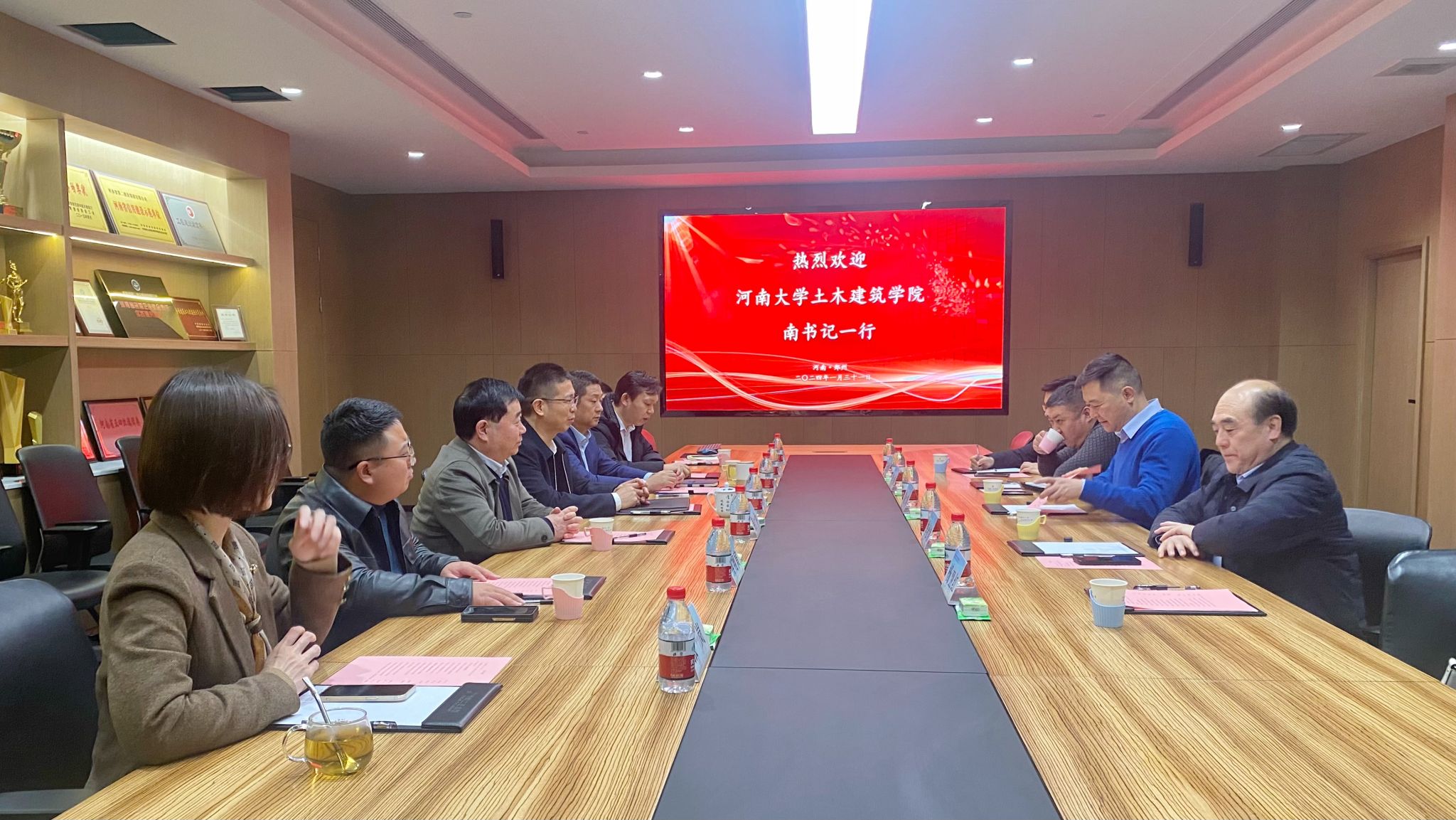 党委书记南晗、正处级组织员李社教、副院长李锋、院办王永锋、校友办杨卫红等走访爱心企业河南省第二建设集团有限公司。