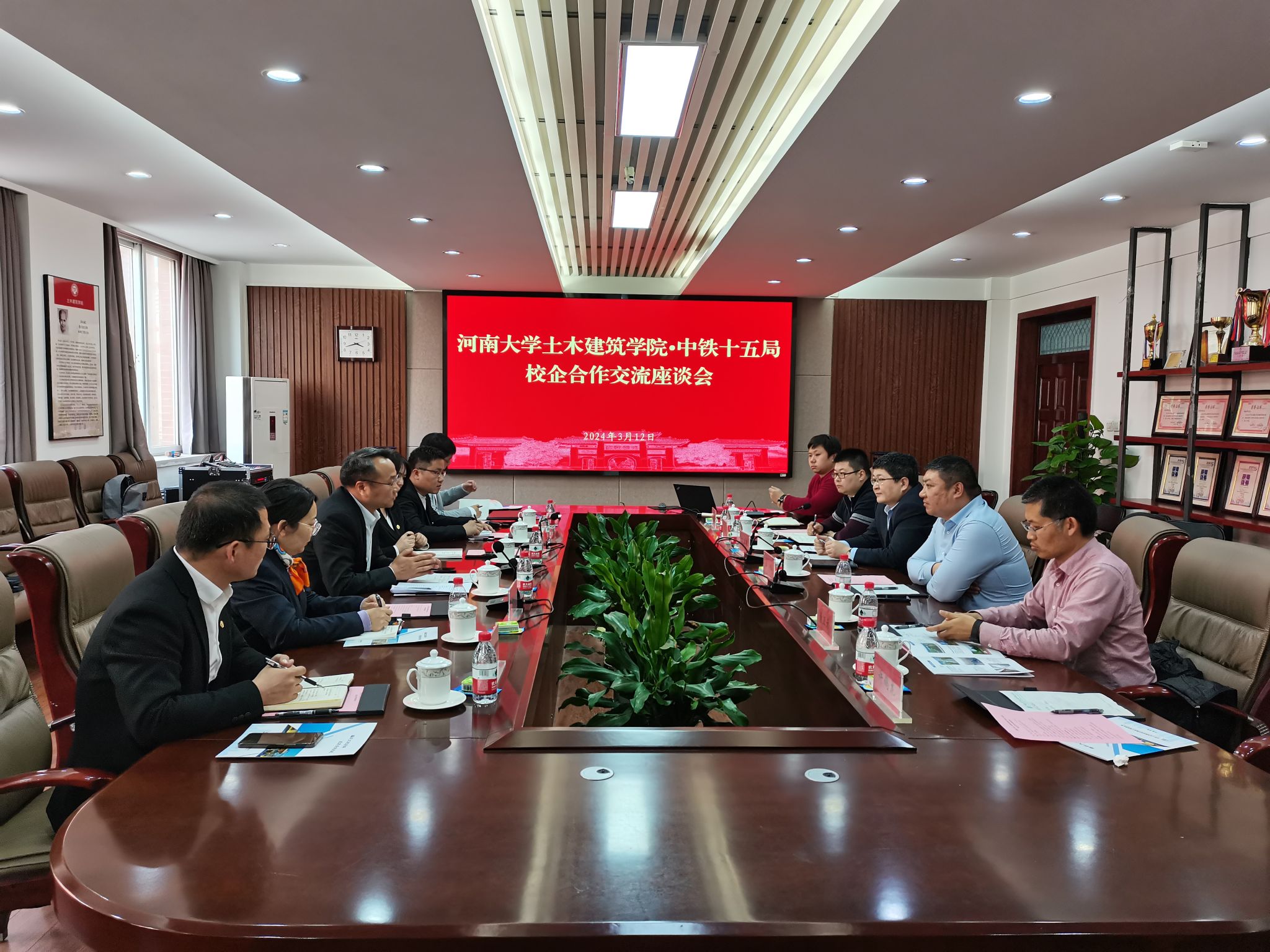 3月12日下午,中铁十五局集团城建公司副总经理、总工程师夏宗军,公司工程技术管理部副部长史红霞以及公司在上海、西安、信阳等地项目总工李慧萍、姚智明、杨普军以及学院2023届校友姚于迪一行6人到蘑菇视频