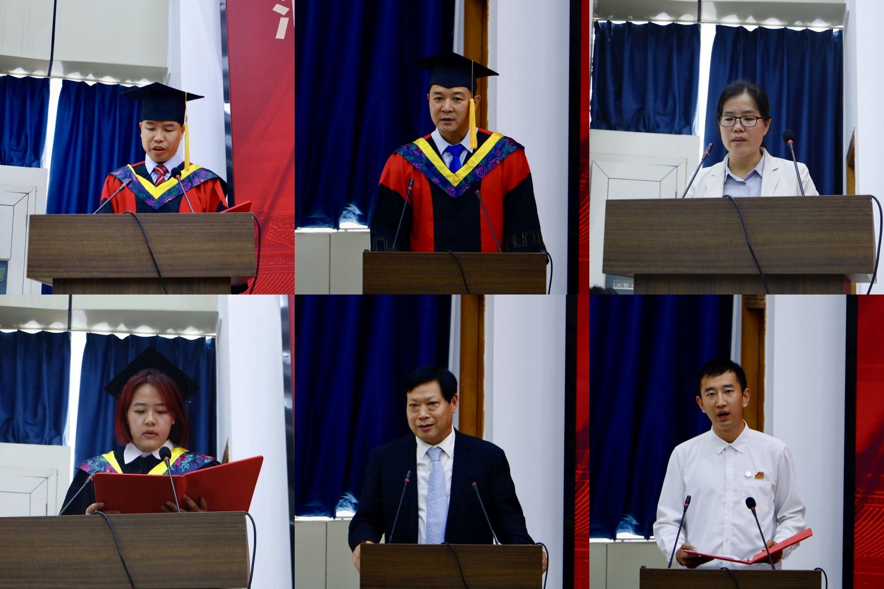 毕业典礼后,学院党委书记南晗带领学院全体班子成员和毕业生党员面向党旗庄严宣誓,重温入党誓词。党员同志们将初心牢记心中,将使命担在肩上,心怀坚定的理想信念,开启新的征程。
