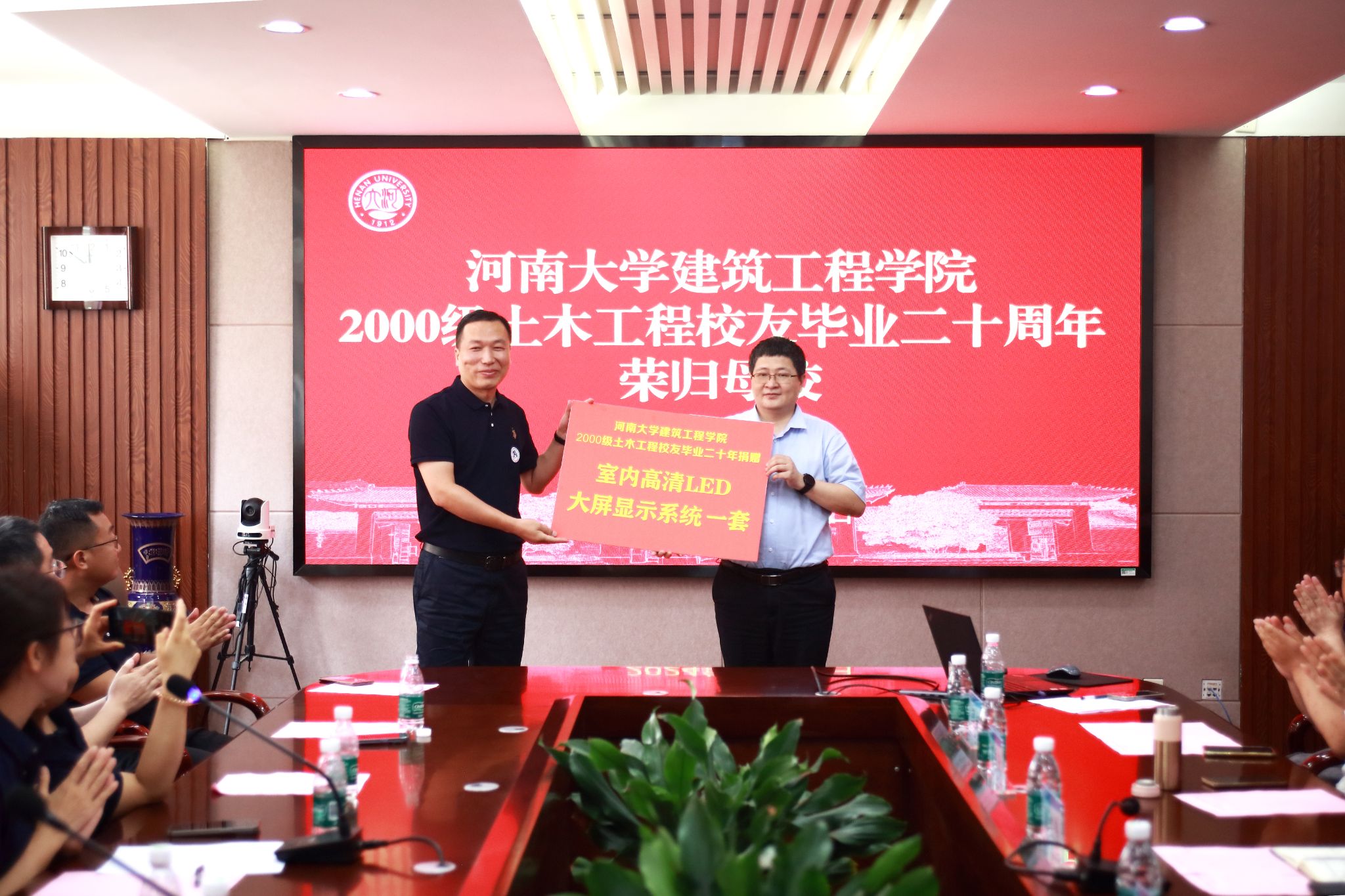 捐赠室内高清LED大屏显示系统,并表示,期待下个十年后再次“千里聚会”时,能够为母校做出更大的贡献。