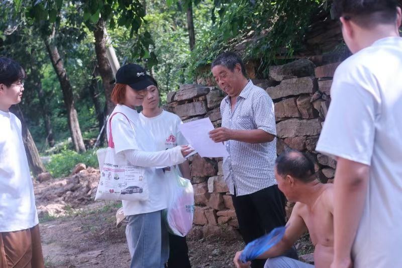 “红情筑梦,韵行基层”暑期社会实践团队成员杜雨旋、张元民、李光澳、范亚冰、彭程、王晨露来到河南省登封市徐庄镇柏石崖村开展实践活动,传承革命精神,弘扬红色文化。