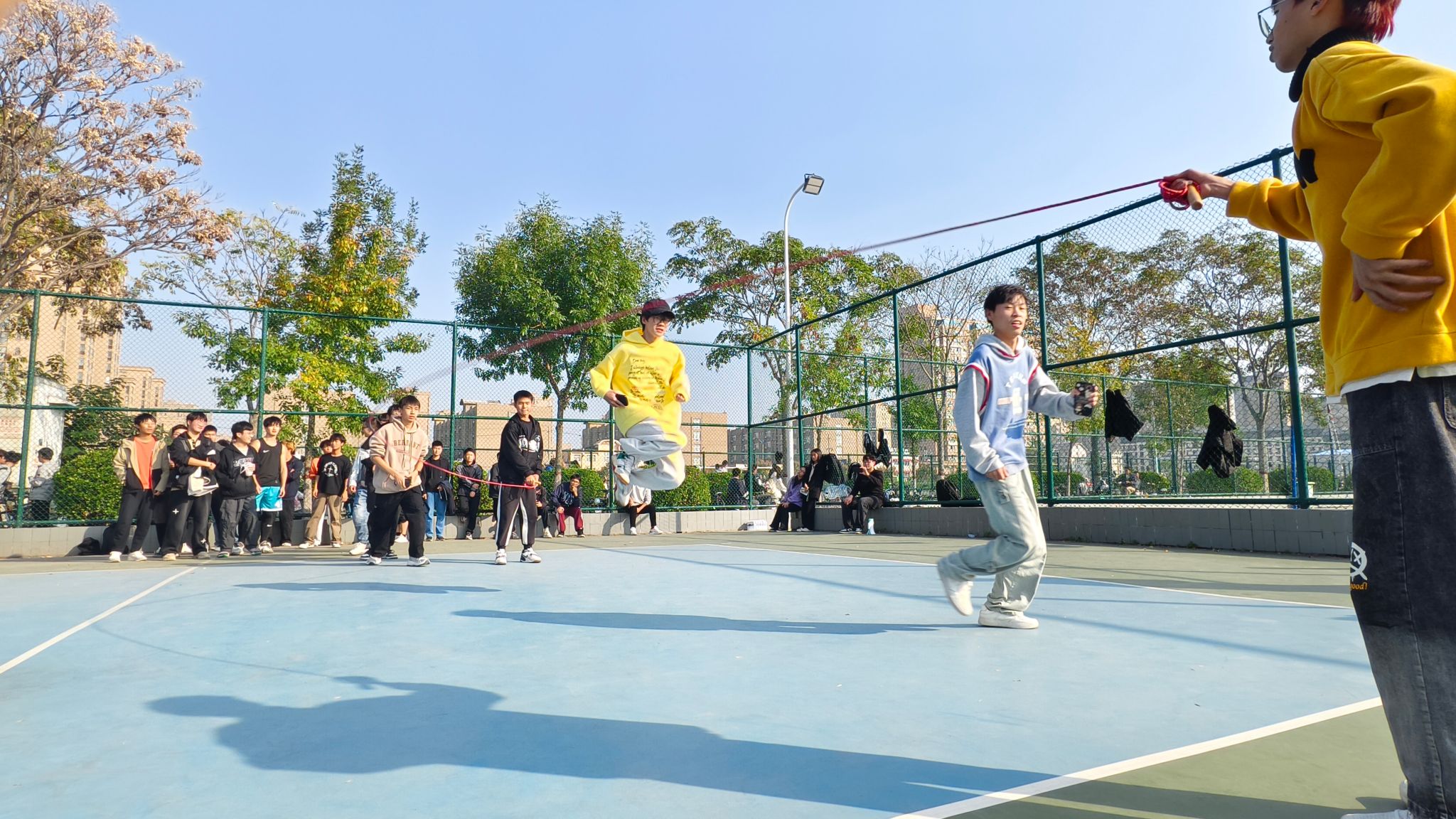 跳绳比赛中,同学们个个精神抖擞,全心投入,有的疾如飞燕,有的缓若游鱼,赢得围观师生的阵阵掌声,现场气氛热烈非凡。飞扬的是跳绳,悦动的是身心,愉悦的是精神,陶冶的是情操,增强的是体质。