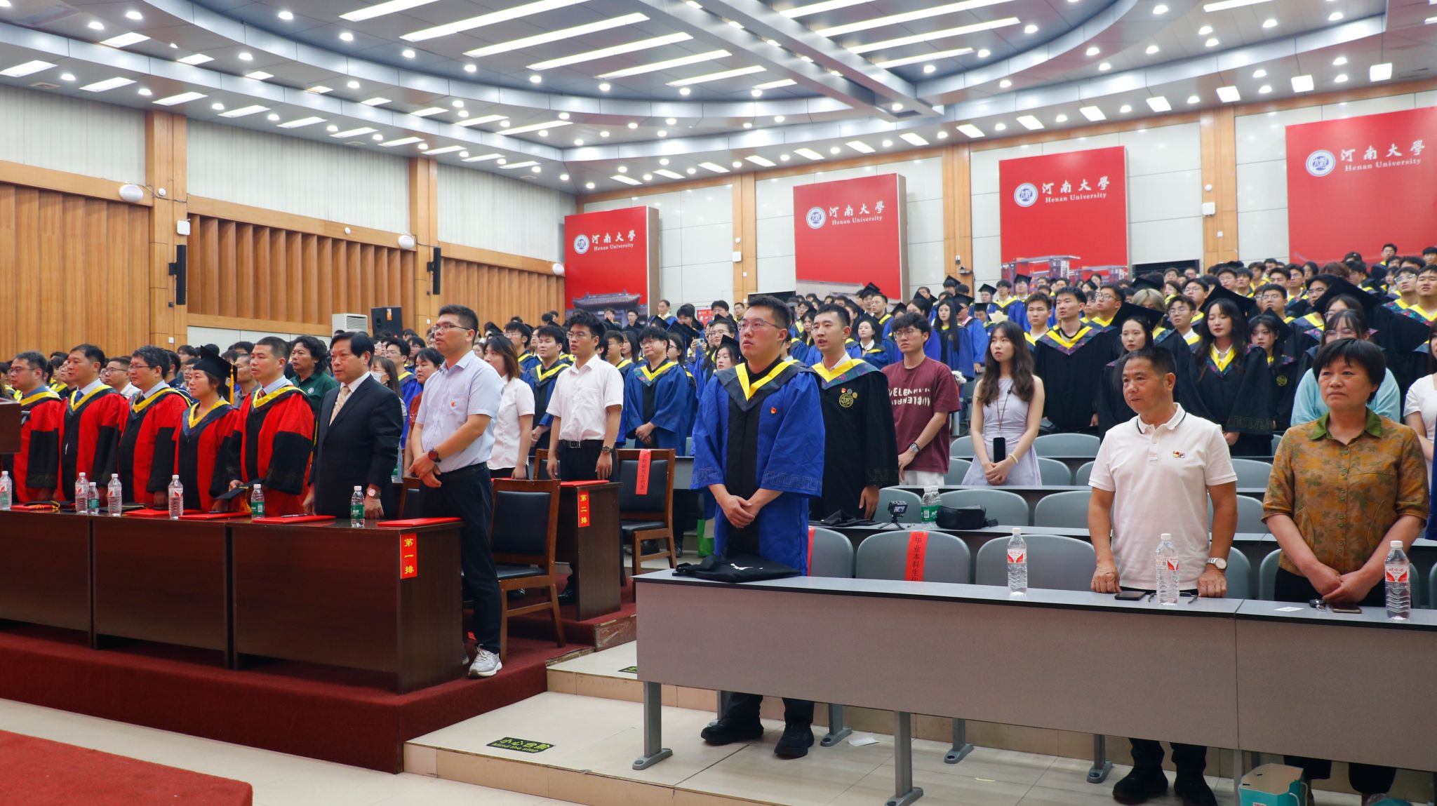 2025年毕业典礼暨学位授予仪式在金明校区计算机大楼报告厅举行。学院全体领导班子成员、教师代表、全体毕业本科生与研究生以及校友代表、河南三建建设集团有限公司党委书记、董事长、总经理李连勇先生参加典礼。师生、校友齐聚一堂,共同见证同学们人生中的这一重要时刻。典礼由学院党委副书记宿云龙主持。
