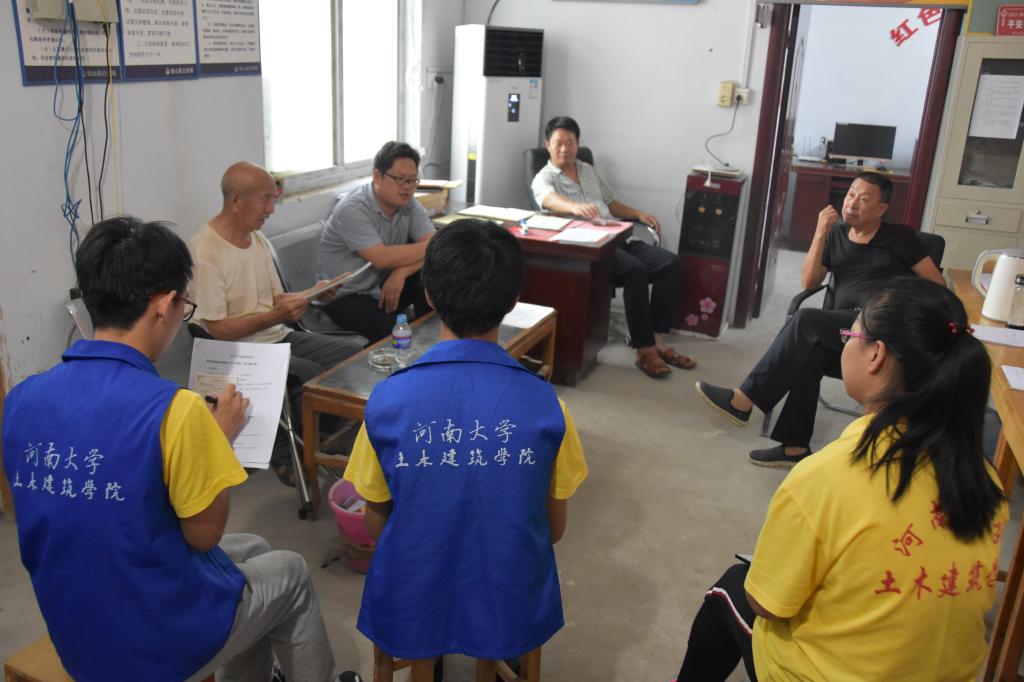 精准扶贫基础设施调研团的成员们共同前往鲁山县磙子营乡,抵达后成员们立刻同陈乡长进行了深入交谈。在陈乡长的详细介绍下,调研团队深入了解了当地的经济发展情况及基础设施现状,这为团队接下来调研工作的开展打下了坚实基础。随后,成员们前往311国道调查交通情况。在炎炎烈日下,队员们进行了一次长达数小时、不间断地交通量统计。