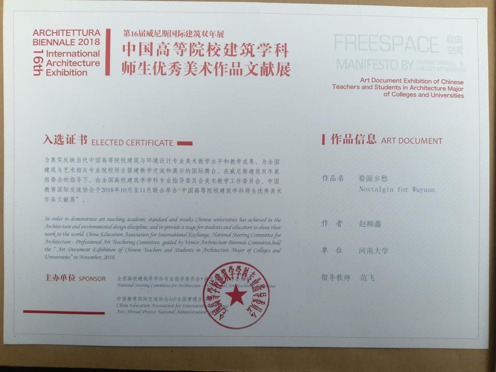 2016级城乡规划专业学生赵柳鑫作品《婺源乡愁》成功入选本届年展。