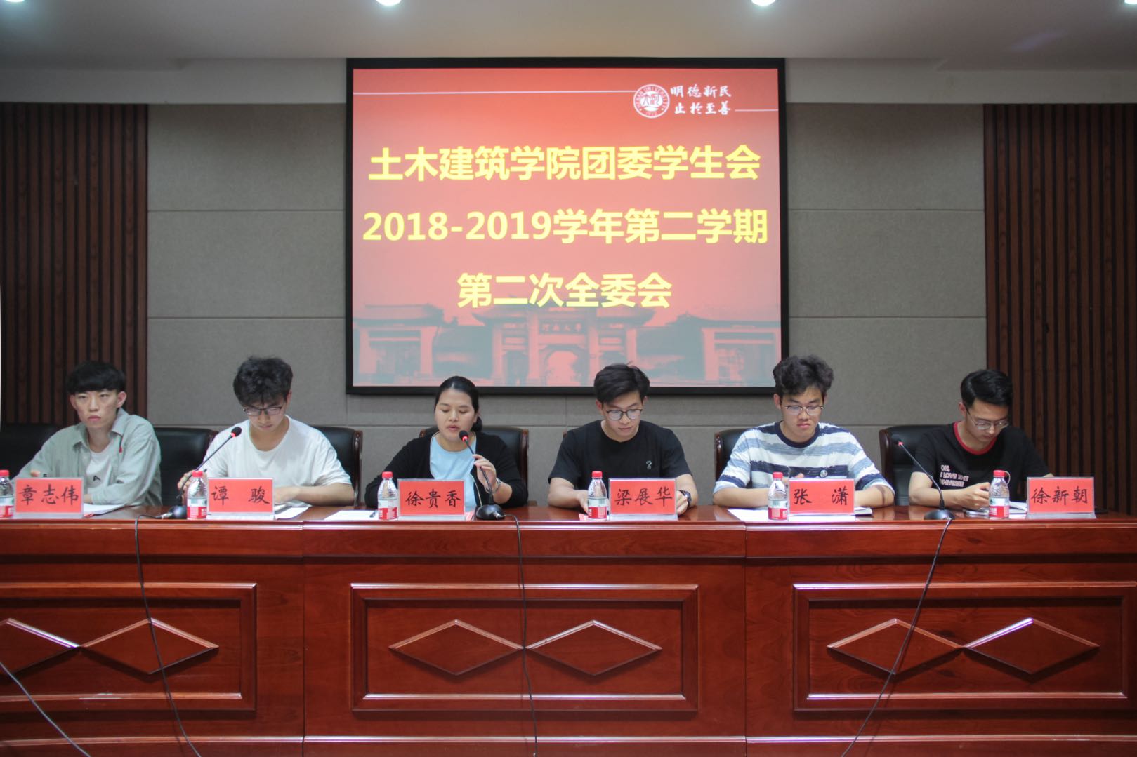 团委学生会于学院结构实验室二楼报告厅召开了2018-2019学年第二次全委会,团委负责人徐贵香老师及学生会全体成员参加了会议,会议由学生会主席谭骏主持。