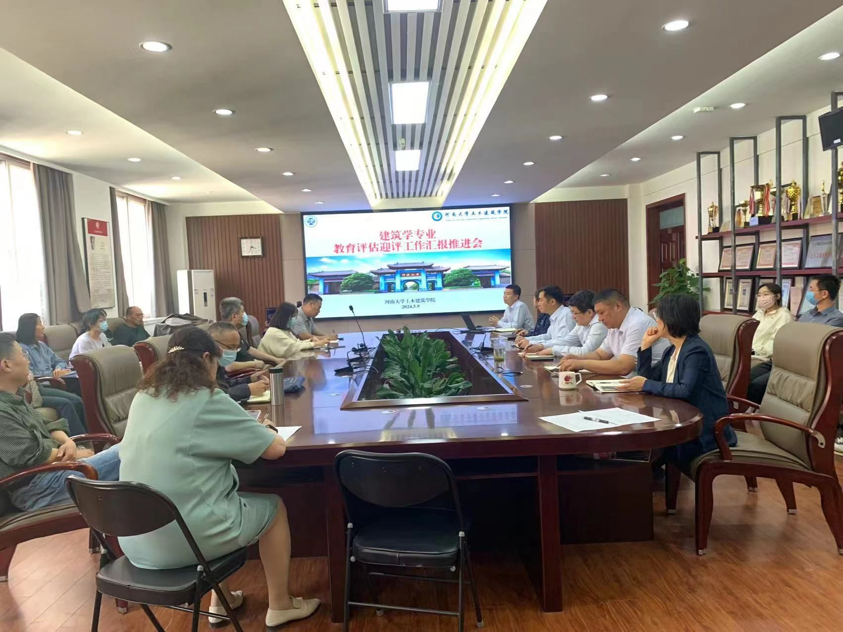 在学院204会议室召开建筑学专业教育评估迎评工作汇报推进会。此次会议旨在全面梳理学院建筑学专业教育评估的迎评准备情况,分享迎评经验,进一步明确迎评工作方向,为即将到来的教育评估奠定坚实基础。学院党委书记南晗、执行院长张建伟、副院长边汉亮、李锋、原华、史学民,评估办、教务办、校友办、院办、党办、虚拟仿真实验室及建筑学专业全体教师出席了此次会议。会议由副院长边汉亮主持。