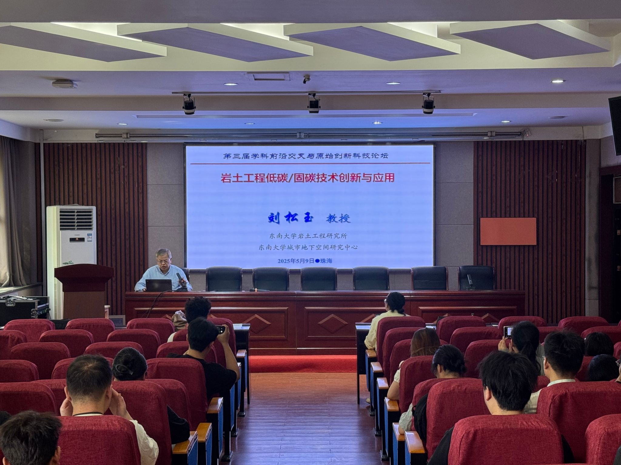 5月16日上午9点,东南大学刘松玉教授应邀在学院16D结构实验室二楼报告厅作题为《低碳/固碳地基处理技术创新与应用》的学术报告。报告由学院副院长原华教授主持,学院副院长边汉亮副教授及60余位师生聆听了报告。