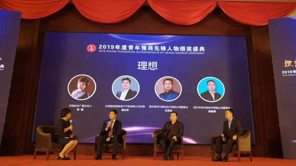 重庆校友分会副会长、重庆港筑行建筑设计公司董事长王良友走上舞台,接受这份荣誉的礼赞。300位来自各行各业的青年企业家相约中原、共襄盛举,共同聆听创业领袖的商界感悟,见证三地青年豫商先锋人物的荣耀时刻。