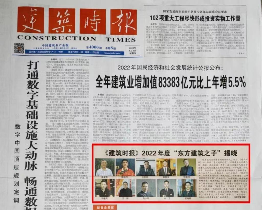 3月16日,《建筑时报》2022年“东方建筑之子”(中国建筑业年度人物)在浙江绍兴揭晓,蘑菇视频