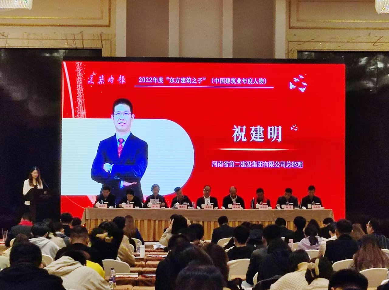 2022年,在祝建明的带领下,河南省第二建设集团有限公司继续保持战略定力,展现发展韧性,在企业经营、海外布局、科技创新、精益建造、文化建设等方面留下诸多高光时刻,连续四年荣膺河南民营企业百强系列榜单。2022年度承接电力工程37.55亿元;公司获批“河南省创新龙头企业”,参与国家“十四五”重点专项研发项目子课题2项,专利授权累计突破300项,成功迈进河南省知识产权强企序列;位列2022中国光伏电站EPC总包企业20强;以“工程承包、产业投资、国际贸易”为抓手,逐步形成海外发展核心竞争力;由祝建明主导的一系列创新管理举措落地实施,极大助推了工程创优再获佳绩,承建的华能罗源电厂一期工程、云南神火铝业有限公司90万吨绿色水电铝材一体化项目、华能河南濮阳500兆瓦风电场项目等相继摘得国优金奖、国优奖、中国建筑工程装饰奖,并摘得首个有色金属工业奖项。