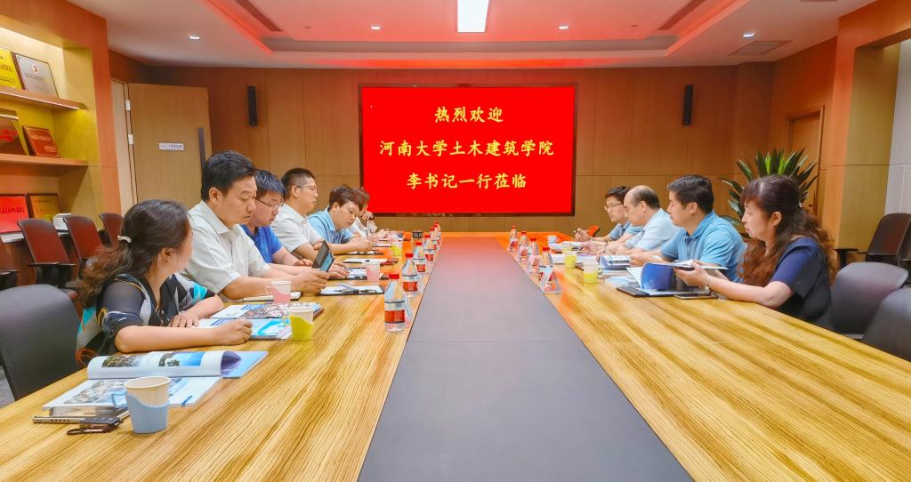 土木水利专业学位研究生教育创新基地)总经理94级校友祝建明、副总经理2001级校友燕中、总工程师苏群山、人力总监张浩敏等进行座谈。祝建明对学院领导的到访表示热烈欢迎,介绍了公司近况和在新形势下公司保持良性循环、保持稳定的举措,进一步强化校企合作。公司其他领导就公司在科技兴企、围绕应用搞创新、工程项目进展、人才需求培养等方面进行深入探讨交流。
