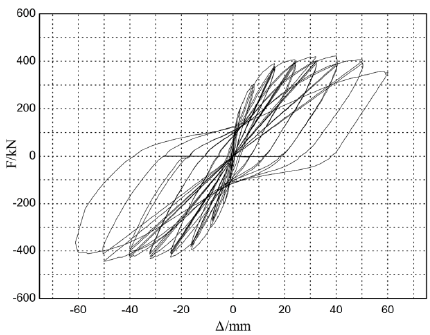 进行结构拟静力试验的主要目的,首先是建立结构在地震作用下的恢复力特性,确定结构构件恢复力的计算模型,通过试验所得的滞回曲线和曲线所包围的面积求得结构的等效阻尼比,衡量结构的耗能能力,同时还可得到骨架曲线,结构的初始刚度及刚度退化等参数。由此可以进一步从强度、变形和能量等三个方面判断和鉴定结构的抗震性能。最后可以通过试验研究结构构件的破坏机制,为改进现行结构抗震设计方法及改进结构设计的构造措施提供依据。